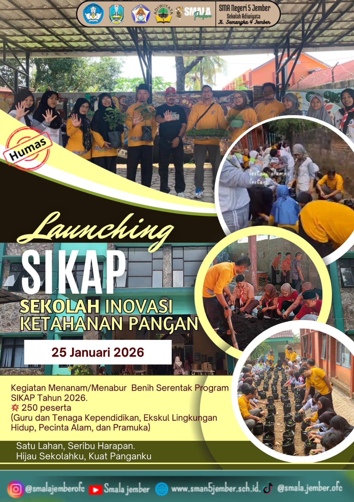 SMA Negeri 5 Jember turut mendukung peluncuran Program Sekolah Inovatif Ketahanan Pangan (SIKAP) yang dilaunching Gubernur Jawa Timur, Khofifah Indar Parawansa, Minggu (25/1/2026).