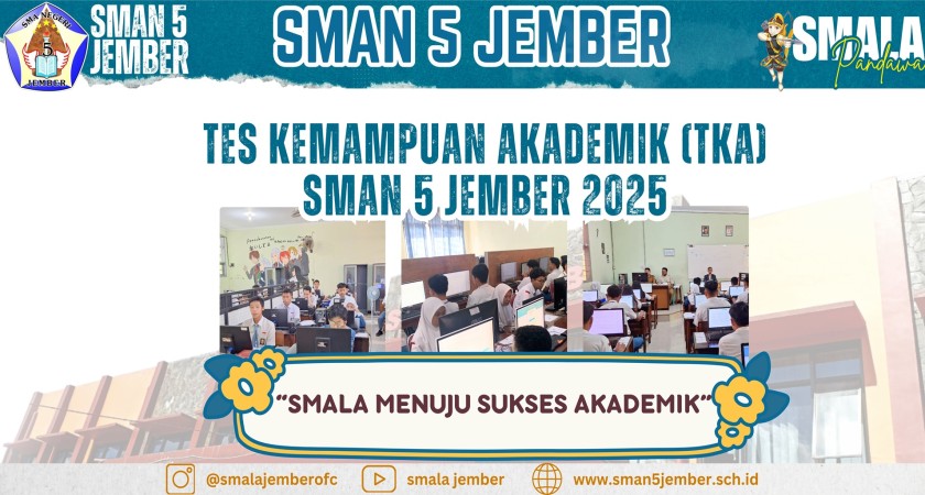 TES KEMAMPUAN AKADEMIK atau yang dikenal sebagai TKA sudah mulai dilaksanakan tangga 3 November 2025. Kegiatan tersebut dilaksanakan secara serempak oleh seluruh sekolah jenjang SMA,SMK, SLB, termasuk juga paket C di Provinsi Jawa Timur. Peserta yang mengikuti kegiatan tersebut adalah siswa kelas XII. Kegiatan tersebut berlangsung selama beberapa hari dan di bagi beberapa sesi dan gelombang. SMAN 5 Jember melaksanakan kegiatan tersebut dalam 4 hari dan di bagi menjadi 2 gelombang 2 sesi. Berikut adalah beberapa arahan dan pengumuman yang diberikan oleh Ibu Gubernur Provinsi Jawa Timur Ibu Khofifah Indar Prawansa.